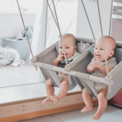 The duo swing is most suitable for children 0,5 to approximately 3- 4 years and the max load is 50kg. The dimensions of the swing are 40×75 cm and the depth 35 cm.
