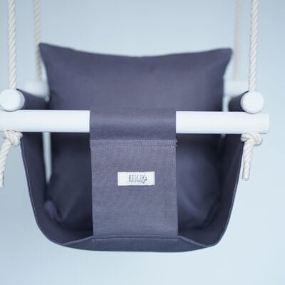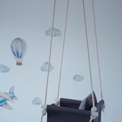The high quality fabric, multiple seams with extra strong thread, non-toxic chalk paint and natural rope used to create a Starcatcher baby swing make sure your little one is safe and sound while swinging to the stars.