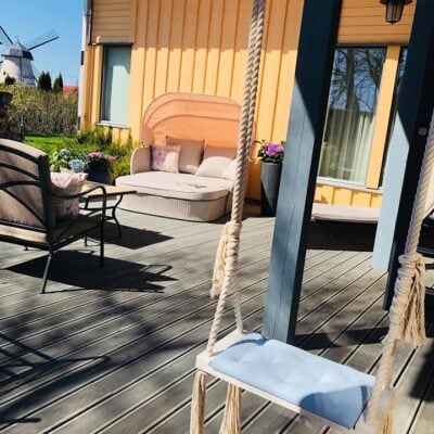 ☁ CLOUDCATCHER swing is made of glulam (glued wood), which is definitely more durable than solid wood. In addition, glued wood does not undergo the process of sticking, delamination or most importantly – twisting.