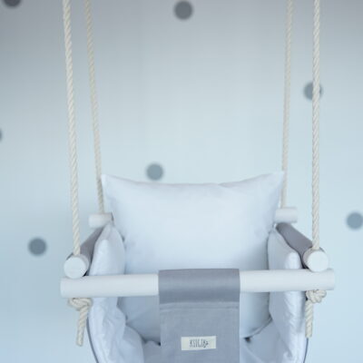 Grey baby swing with white cushion