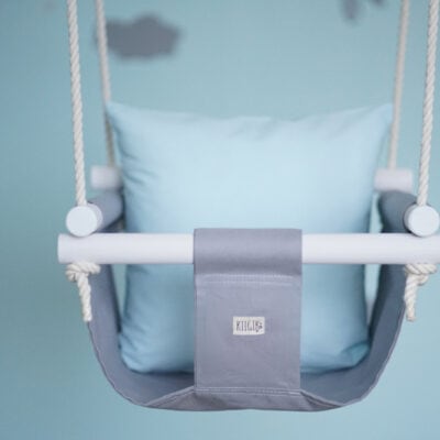 This is a beautiful light grey baby swing made with Oeko-tex Standard 100 cotton canvas fabric. You can choose between different colours for the pillow.