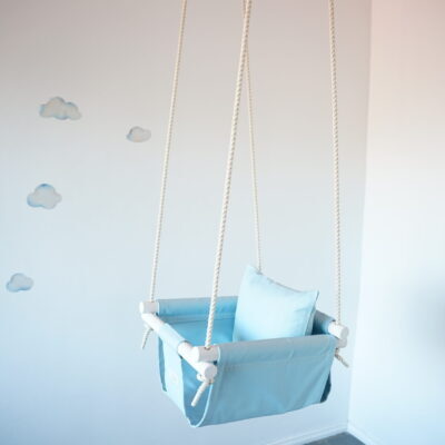 The high quality fabric, multiple seams with extra strong thread, non-toxic chalk paint and natural rope used to create a Starcatcher baby swing make sure your little one is safe and sound while swinging to the stars.